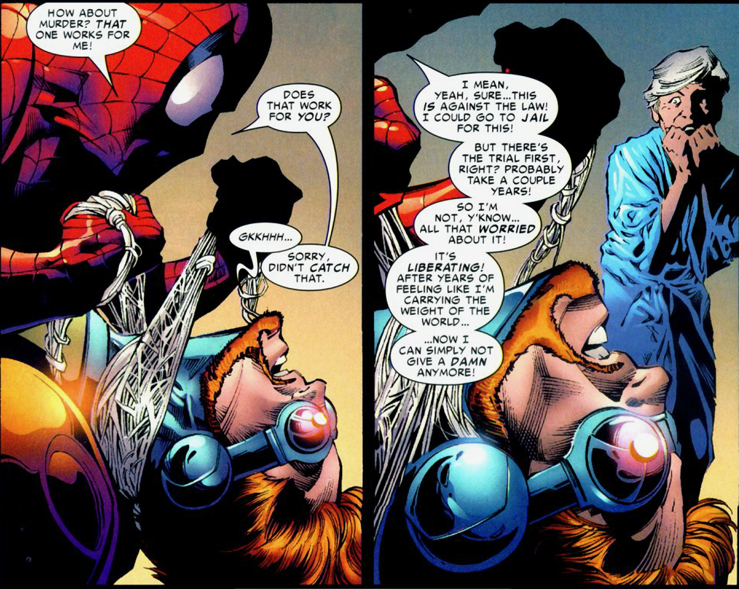 Turns out, though, that he’s a robot so Spider-Man didn’t kill. But he was WILLING to.