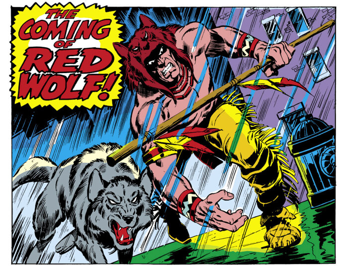 First appearance of The Red Wolf, one of the first Native American superheroes. Wyatt Wingfoot came earlier, in the pages of Fantastic Four #50, but he wasn’t really “super.”