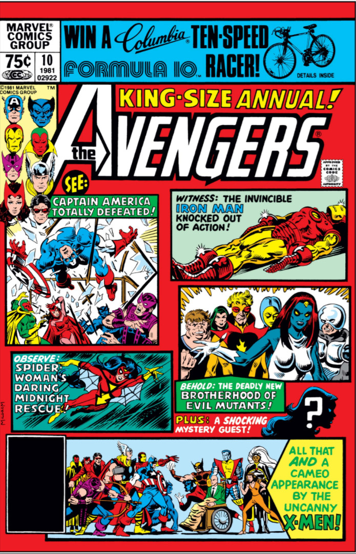 I am not going to try to minimalize the power and importance of this Annual, because it IS important, in that it’s primary purpose was to undo the unfortunate events of ‘Avengers’#199-200, while simultaneously entertaining it’s readership with the obligatory ‘superhero versus supervillain’ battle. ( The Avengers versus the newly-reconstituted- improved??-Brotherhood of Evil Mutants ) My only complaint-such as it is- is the introduction and development of Rogue- the quintessential “Claremont Chick”, who shows up and basically just annihilates the mightiest of all the Avengers without even really trying, like Iron Man, the Vision, Captain America, and, yes, even Thor. It seems to me that just because Rogue conveniently possesses all of Ms. Marvel’s Kree superabilities, she still shouldn’t be able to just brutalize these particular super-jocks with such wanton impunity. This is, of course, just symptomatic of Claremont’s legendary propensity to create women who are considerably more powerful than the men around them, which is not overly-realistic. This is not to say that there are not capable women in the world, there are- I understand that the Israeli Army, in particular, produces some seriously capable women- it just seems to me that Brother Claremont goes out of his way to showcase them. Maybe if I were a feminist, myself- an Alan Alda, a Phil Donahue, ( who just mercifully and finally passed away this past week ) or a Chris Claremont, I could warm up to this relentless emasculation of male superheroes, but- I can’t. Maybe in a few more decades. ( after I am mercifully dead ) I did, however, appreciate Mystique’s gizmo which incapacitated Iron Man’s armor, because, many years prior to this Annual, I had been wondering what was taking some smart super-baddie like the Mad Thinker, the Mandarin, Magneto, Egghead, and, most especially, Dr. Doom, so long to invent this thing! I do not believe for one second that Mystique herself actually invented it- her technological acumen just simply isn’t that sharp- ( it’s above her scientific pay-grade! ) but she IS “connected” enough within the world of terrorists to find somebody who CAN invent it- and buy it off of them! That, I had no trouble with, and actually enjoyed witnessing. I believe it is safe to assume by now that ol’ Tony has probably figured out a way to counter that technology- this story first appeared in 1981, and that was a long time ago, even by the standards of “Marvel-Time”! So, Tony has probably figured out a way around this nullifier-gizmo, by now. Good! That realization makes me sleep easier. Two final points on the story: 1) I found Carol’s escape from Limbo to be just a little too convenient. Just because her son/captor Marcus ( also ) conveniently croaks out, doesn’t mean that there’s any scientific explanation for Carol “inheriting” Marcus’ knowledge on how to travel back and forth from Limbo! To my mind, following Marcus’ ultra-convenient death, Carol should have been hopelessly stranded in Limbo! ( not that we could ever have been that fucking lucky ) Carol tells the Avengers that, following Marcus’ death, she “inherits” Marcus’ knowledge on how to come and go from Limbo- and that’s that!! Rather convenient, I’d say. The final point is how much I enjoyed Michael Golden’s incredible artwork on this tale, and as Mr. Ekko touched upon, I enjoyed his interpretation of Sprite with big, beautiful eyes! I think that Marvel should have KEPT that look on Miss Sprite- it WORKS for her!! Marvel- the “House of Ideas”- could have explained away Miss Sprite’s unnaturally huge eyeballs by simply-and I mean, SIMPLY- explaining them away as a benevolent genetic mutation!! If there is one thing in life that I hate, it’s missed opportunity!!! I have never historically been a big Sprite/Shadowcat fan, ( in spite of her marginal mutant power and natural scientific genius, I just have never considered her to be X-Men material!!! Sorry!! ) but had this detail of her appearance been established as artistic policy, it would have undoubtedly softened my evaluation of her. I hate missed opportunitity!!! However, in spite of all these grievances with the 1981 Avengers Annual, I nevertheless have to agree with Mr. Ekko that this epochal issue most definitely deserves an “A+”, if for no other reasons that, 1) It got the ball rolling to “fix” the damage done to Carol Danvers by David Michelinie, 2) Claremont’s level of writing was as intelligent as the art-form can get, 3) This Annual was Michael Golden’s career masterpiece, and 4) Sprite’s one-panel appearance as an adorable Hobbit! X-Celsior, and ‘Nuff said!!!