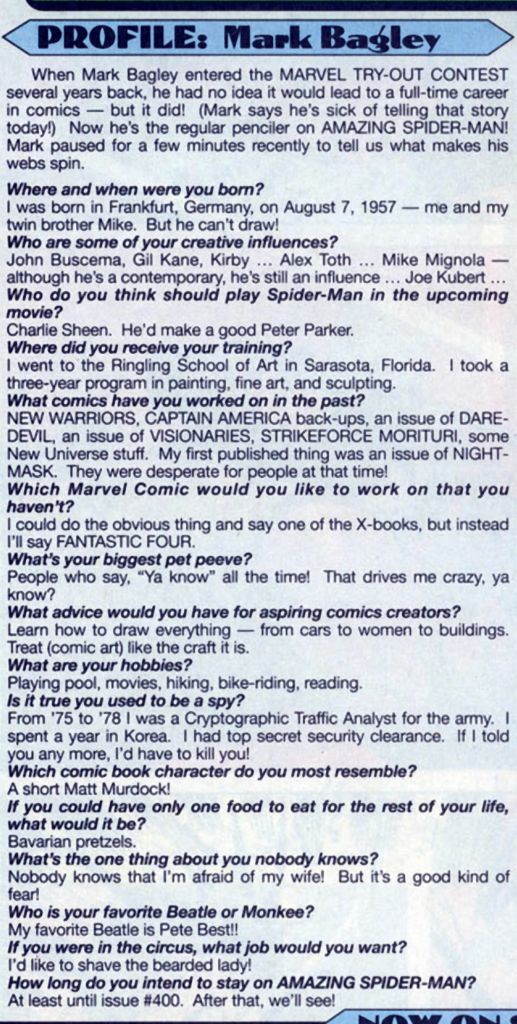 BULLPEN BULLETINS (1995): PROFILE: MARK BAGLEY