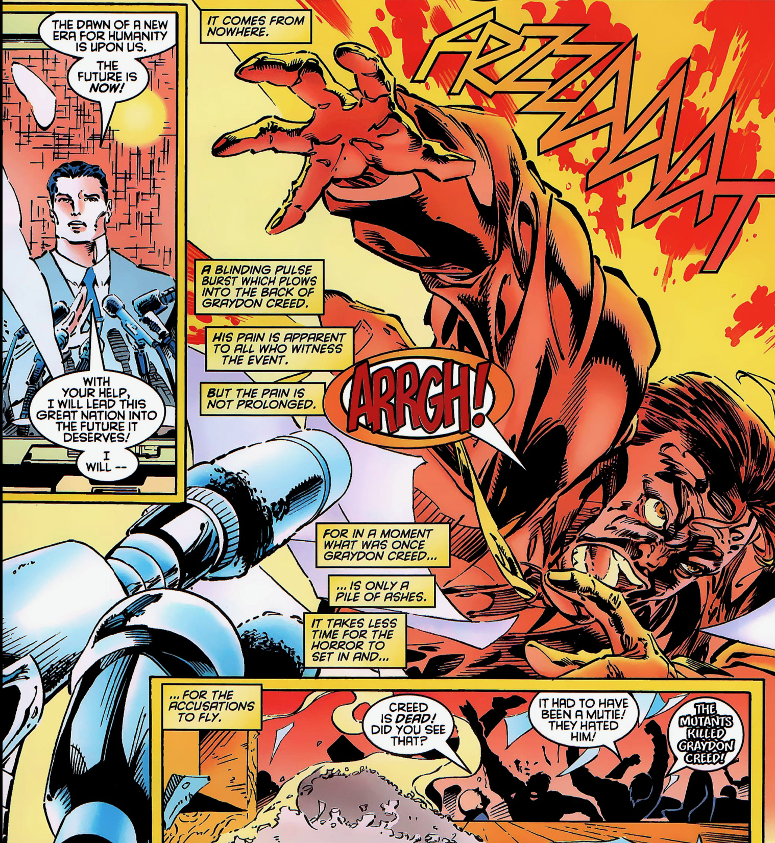 Sabretooth banged Mystique and created a mutant hating Presidential candidate who got assassinated by his own mom.