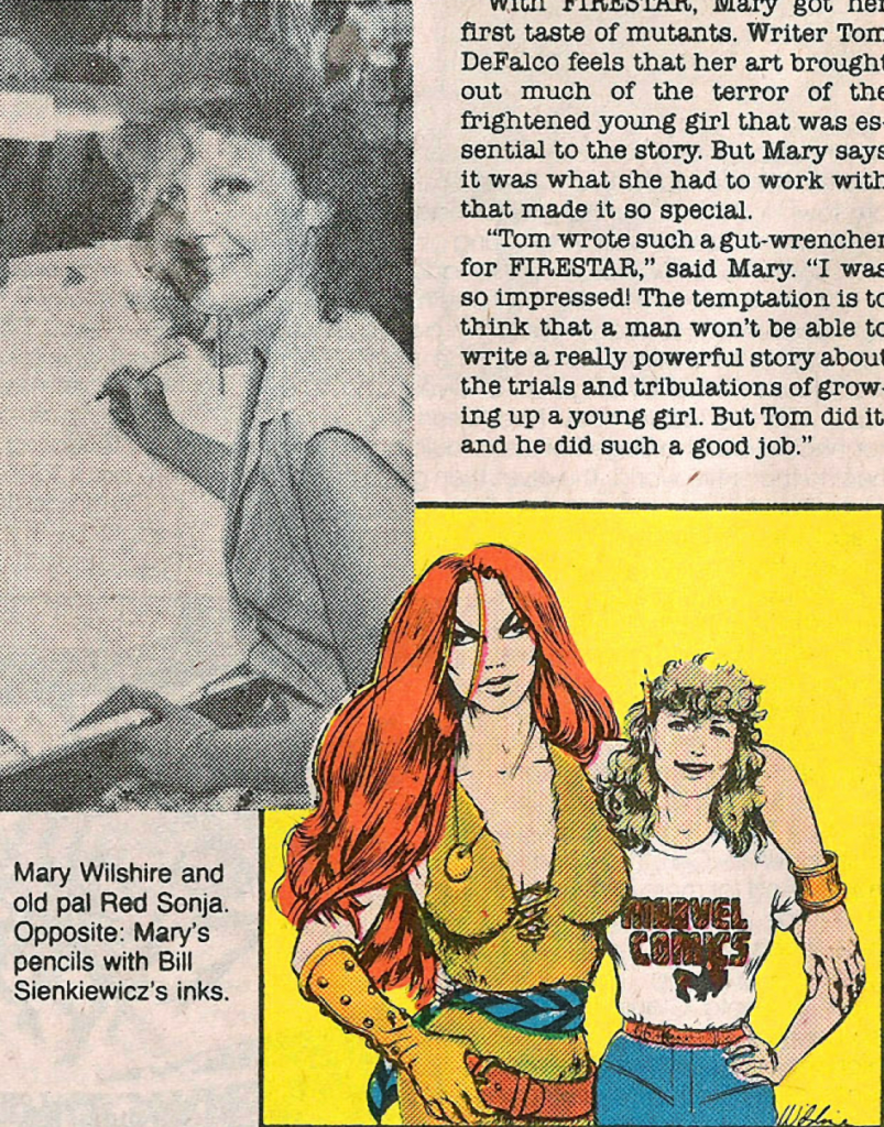 Best known as an artist for Crazy Magazine, but she also drew the first Firestar miniseries and early issues of the 1980s Red Sonja solo series.