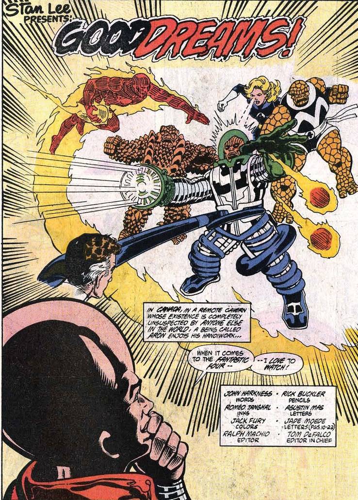 Last arc ended with Aron the Watcher having the Fantastic Four imprisoned in another dimension and dreaming. It’s weird. These issues are just a group of tales that never actually happen and therefore don’t matter. And they’re bad. In fact, Englehart doesn’t take credit for them—he is writing under the name John Harkness. I’ve read that Marvel’s Editor in chief was feuding with him and that’s why his run ended in, essentially, a chaotic fizzling out that made no sense at all.