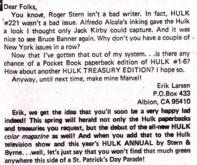 And future comic book creator extraordinaire Erik Larsen gets his name in print!
