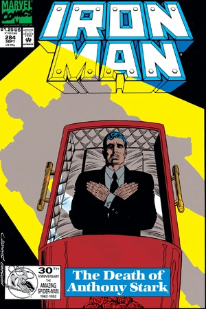 At the very end of issue #286, the true “big bad” is revealed to be Morgan Stark, Tony’s cousin.