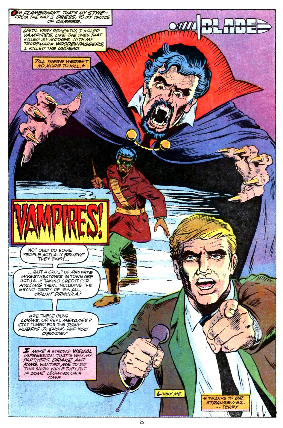 It retells the story of Drac taking Blade’s girlfriend and vamping her. It’s just a reintroduction to the character, who hasn’t been around much lately because (as he laments in the story) there aren’t any vampires anymore. So he has nothing to do.