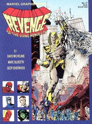Anyway, lots of major heroes take part in this story where The Living Pharaoh escapes FF custody and goes nuts in New York. At the end of the story, the Monolith is pushed out into space and becomes a planet.