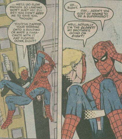 Super-storywise, the two boys are happy to be in the Big Apple, so they go out to find Spider-Man.