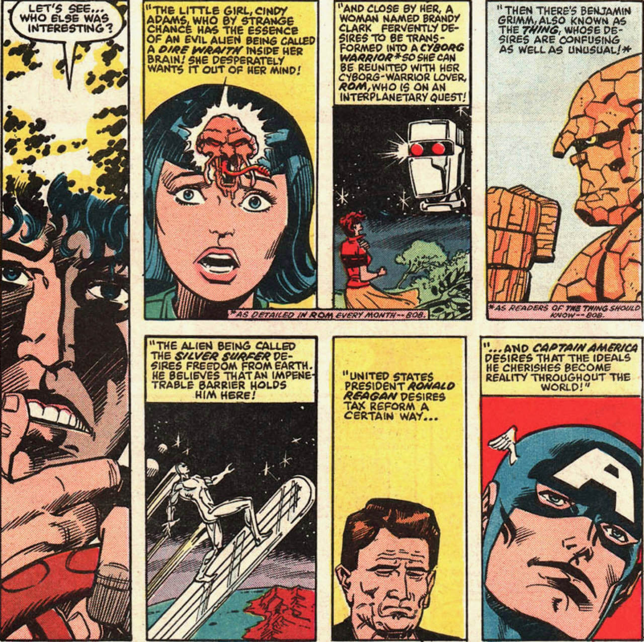 He also goes to Alpha Flight to resolve the plotline of Talisman being stuck in her father, Shaman’s, magic bag (see Alpha Flight #27). He does this because there’s an engagement ring he wants to pull from the bag (but if he can bring people back to life, surely he could have just created his own?). I don’t like that Beyonder is being used to intervene with active plotlines in ongoing books. It feels lazy.