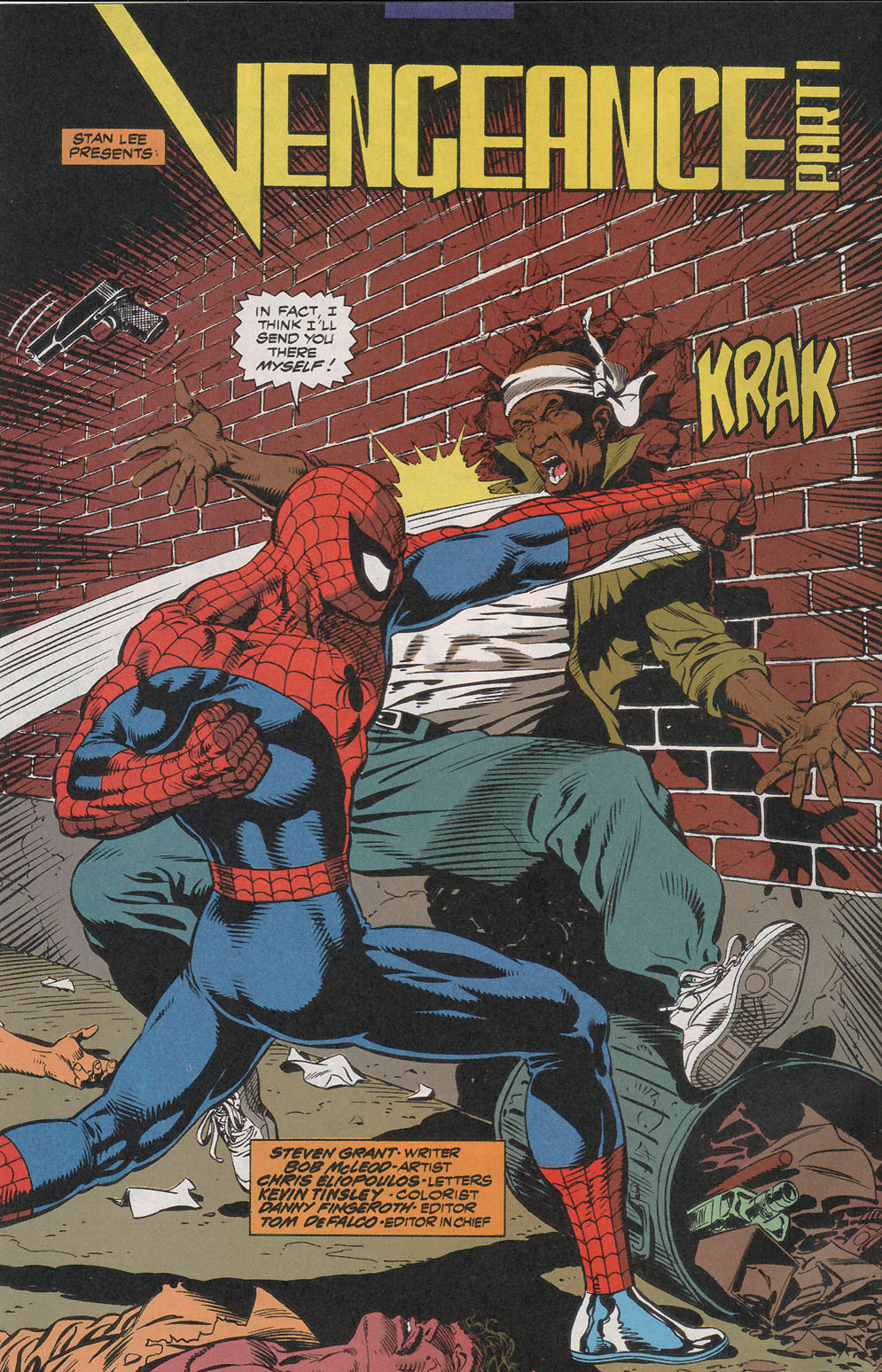 There’s a vigilante killing criminals in New York, but it’s not Punisher. I mean, he is killing criminals as well, but in this issue Spider-Man is doing it.
