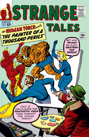 First, it’s “The Painter of A Thousand Perils.” It’s basically Human Torch vs. Harold and the Purple Crayon, only the painter has much less imagination than Harold did. His name is Wilhelm van Vile (The Painter), and with some magic paint, paintings come to life.