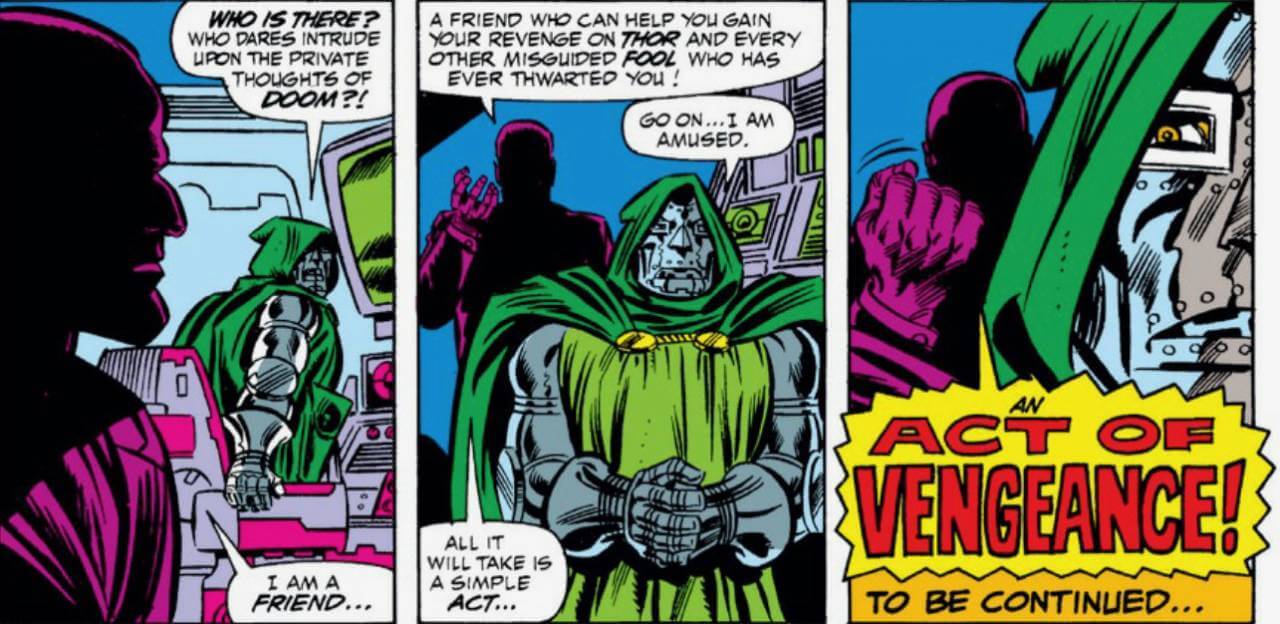 …Who offers to help Doom with an “Act of Vengeance,” setting up the next story for the line-wide event tie-in. (It’s Loki.)